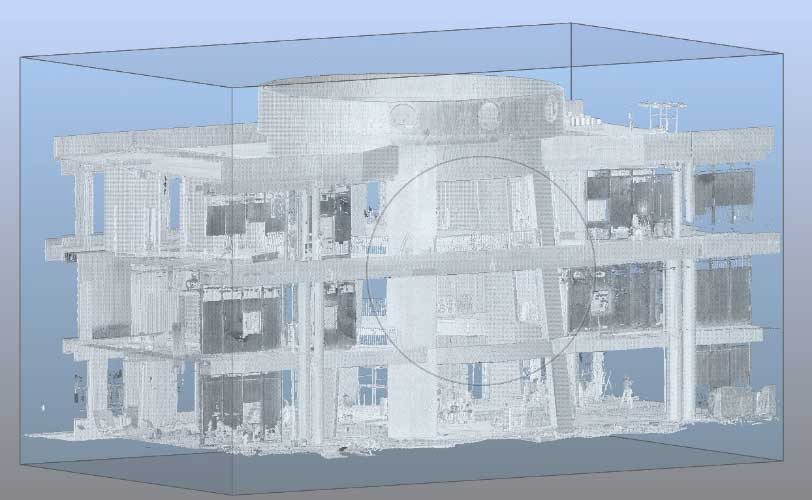 Tarama verileri işlenerek bina için tam çözünürlüklü 3D nokta bulutu elde edilir.